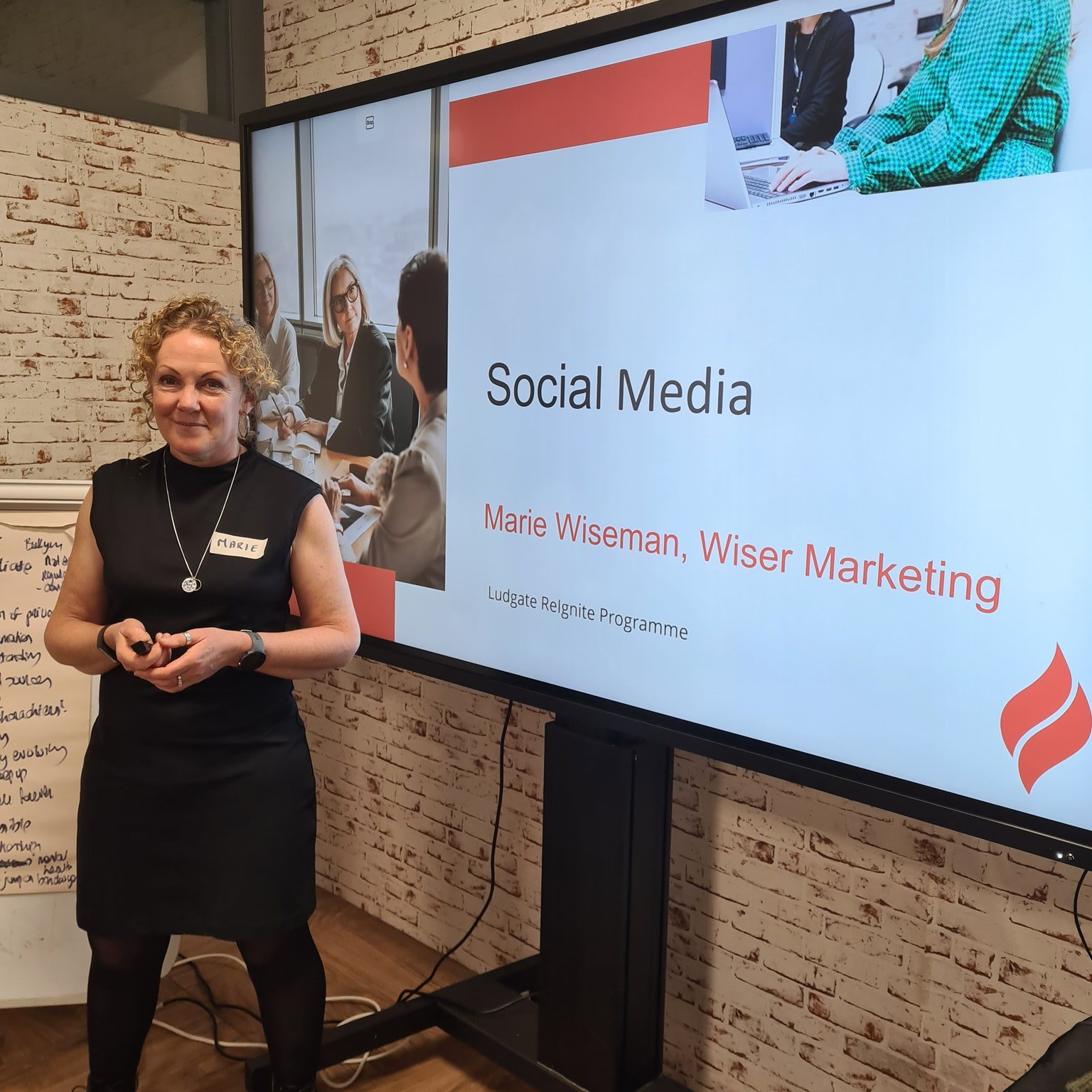 Image 2 – Wiseman, M (2022) – ‘Marie Wiseman of Wiser Marketing, delivering training at the Ludgate Hub in Skibbereen (photograph)